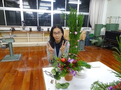 12月19日(木)に第4回家庭教育学級を開催しました。今回は長友先生を講師に迎え、フラワーアレンジメントを行いました。生徒もたくさん参加してくれて楽しい時間を過ごし、素晴らしい作品が出来上がりました。