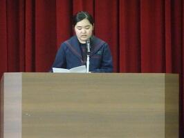 1月17日(金)の午後に国富町農村環境改善センターで【新春子どもの声を聞く会】が開催されました。町内小中学校の代表7名が将来の夢や希望、望ましい社会の在り方などについて発表しました。八代中は生徒会長の徳満さんが代表で出場し、『個性を認め合い、尊重する』の演題で発表しました。人権教室で聞いたトランスジェンダーの方の話から思ったこと、感じたことを理路整然と述べてくれました。立派な発表でした。