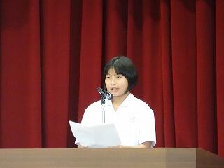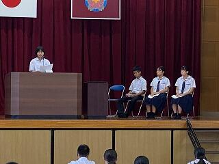 4校時に始業式があり、各学年と生徒会代表の生徒が、2学期の抱負を述べました。