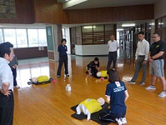 6月7日(木)放課後に日本赤十字から植田さんに来ていただいて、AED研修を実施しました。学校での緊急時にすばやく的確に対応できるように先生方のための研修です。何かあった時のために普段からの備えが大事だと実感しています。