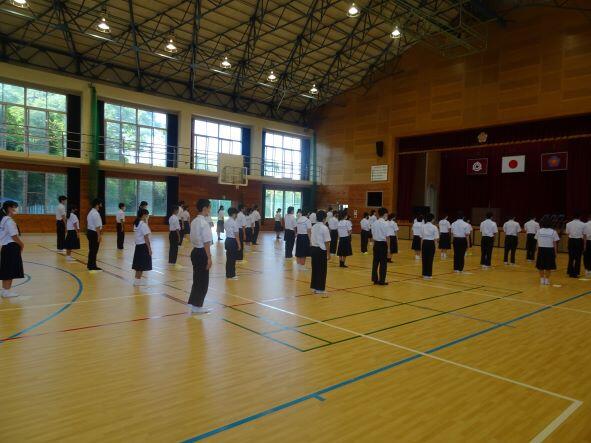 始業式が行われました。1年 大野君、2年 佐藤君、3年 河野君、生徒会 中別府さん が2学期の抱負を発表してくれました。2学期は体育大会をはじめ、重要な行事がたくさん行われます。積極的に参加して飛躍の学期にしてください。