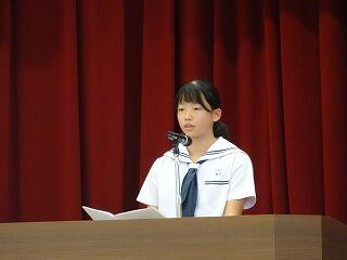 4校時に始業式があり、各学年と生徒会代表の生徒が、2学期の抱負を述べました。