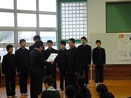 11月19日(月)の放課後に教育リーグ3位入賞を果たした男子バレーボール部の表彰を行いました。これまで苦戦続きで表彰された経験がなかったので、みんな照れくさそうでした。これから何回でも表彰されるようにがんばってください。