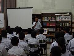 7月19日(木)の午後に【命の大切さを学ぶ教室】として、笹森義幸さんに来ていただき講演をしていただきました。笹森さんは平成14年12月に当時、八代中学校1年生であったご長男の郁也君を交通事故で亡くされました。畜産業の傍ら、県内外の学校を中心に講演をされ、交通事故撲滅のためにご尽力いただいています。当日は「息子のために~天国からのメッセージ~」という演題でお話しいただきました。