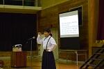 10月23日(日)は文化発表会の日でした。午前中は「二人の会」による朗読とパントマイムの世界を堪能しました。その後、国語の意見発表と英語の暗唱で午前中のメニューを終え、午後からは全校合唱と総合学習の発表、そして最後に吹奏楽部による演奏で幕を閉じました。これまで、たくさんの時間をこの文化発表会のために費やしてきたこともあり、練習の成果を十分に発揮できた発表会となりました。