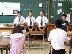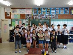 9月15日(金)の午後、八代小学校6年生と合同の交通安全お守りづくりを行いました。生徒会役員の説明の後、3つの教室に分かれ、少人数グループごとに作成に入りました。昨年は教えてもらう側の1年生が教える側にまわり、和気あいあいとした雰囲気での行事となりました。