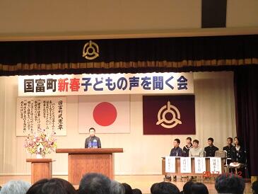 1月12日(木)国富町農村環境改善センターにて新春子どもの声を聞く会が開催されました。本校からは生徒会長が代表で出会し、張りのある声と堂々とした態度で元気に発表しました。