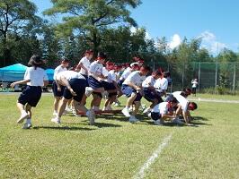 9月16日(日)絶好の秋晴れのもと、【八代中学校第72回体育大会】が盛大に開催されました。全校生徒52名が全力を尽くして、自分たちの団の勝利のために闘い抜きました。競技の部、応援の部、ともに赤団の勝利でしたが、白団も立派に闘いました。見ているものに感動と生きる勇気を与えてくれたものと思います。生徒のみんな!!素晴らしい体育大会でした。