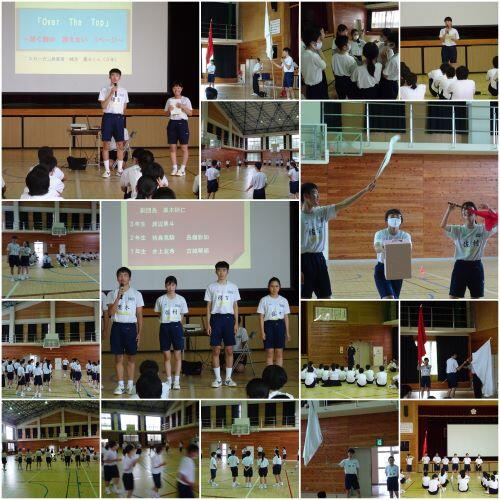 7月14日 結団式がありました。赤団は、団長佐村さん、副団長黒木君。白団は、団長緒方君、副団長盛田麗桜さんです。この日、団長・副団長・リーダーが力強い決意を述べてくれました。みんなで素晴らしい体育大会を作り上げましょう。