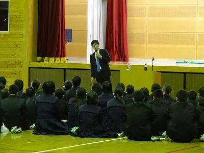 続いて、学校保健委員会が開催されました。講師に宮崎病院の河野次郎医師をお迎えして、ストレスへの対処法やメンタルヘルスについて講演していただきました。