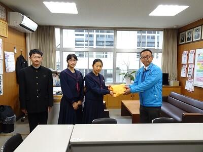 1月27日~31日の間に行われた赤い羽根共同募金で集まったお金5909円を、2月8日に校長室で国富町共同募金委員会に寄付しました。みんなの善意のこもったお金です。有意義な使い方を期待します。ご協力ありがとうございました。