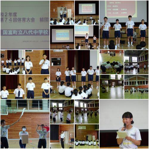 7月14日 結団式がありました。赤団は、団長佐村さん、副団長黒木君。白団は、団長緒方君、副団長盛田麗桜さんです。この日、団長・副団長・リーダーが力強い決意を述べてくれました。みんなで素晴らしい体育大会を作り上げましょう。