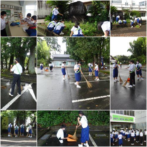 例年より少し早い始業式を行いました。新学期の抱負を木村彩花さん(1年)、野元仁太君(2年)、緒方優斗君(3年)、長嶺彩加さん(生徒会)が力強く述べてくれました。様々なことにチャレンジを自分を良い方へとチェンジさせてください。