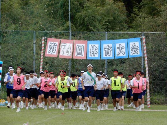 第74回体育大会は、天気にも恵まれ、無事に終了しました。生徒は、皆、全力を出し切ったようで、満足感に満ちた表情をしていました。実行委員長の津島さん、リーダーの緒方君、佐村さん、盛田さん、黒木君、ご苦労様でした。保護者の皆様、ご声援、ありがとうございました。