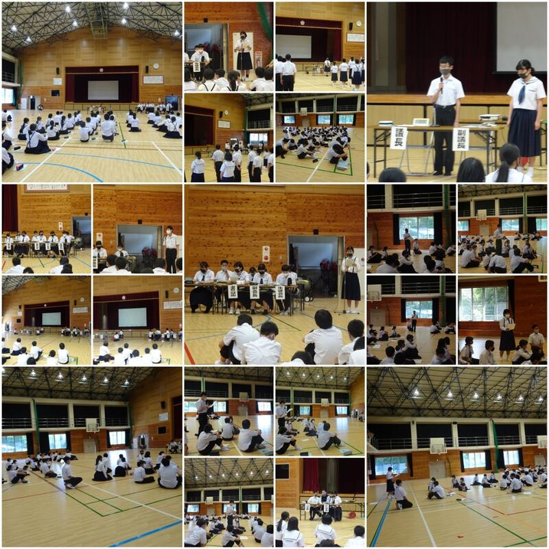 生徒総会が開催されました。司会の児玉直樹君と有村小桜さんが頑張りでメディアの正しい使い方について全校で取り組むことが決まりました。この後、具体的な取組が決められると思います。この日に向けて準備をしてきた生徒会役員と専門員会の皆さん、ご苦労様でした。