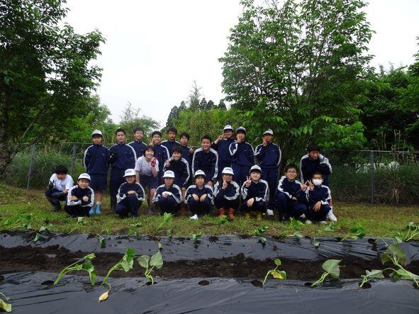 芋の苗を1年生が植えました。立派に育つといいですね。準備をしてくださった佐藤さん、ありがとうございました。