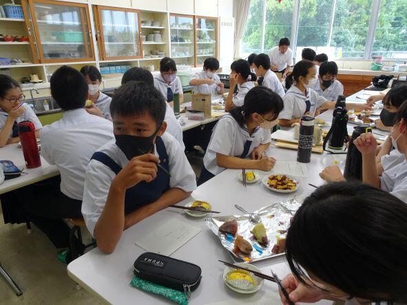 1年生が苗から育て、収穫したサツマイモを調理しました。焼き芋やスイートポテトなどに挑戦しました。悪戦苦闘していましたが、なかなかのできばえでした。美味しかったですよ。