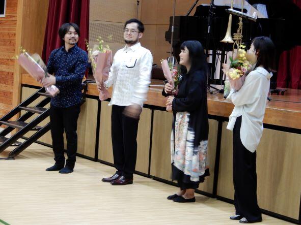 午後の学習発表会の前に鑑賞教室を開きました。香月保乃(ボーカル)さん、柳田祐輔(ギター)さん、坂元陽太(ベース)さん、浜月先生(ピアノ)の素晴らしい演奏と歌を聴かせていただきました。みんな、心を洗われた一時を過ごしました。