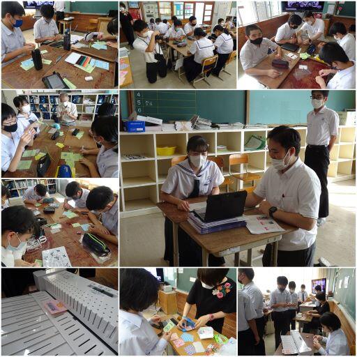 コロナ禍ということもあって、ZOOMで小学校と中学校をつないで、作り方の説明を中学生が行い、その後、制作作業を行いました。作ったお守りは、家庭に持ち帰って保護者の方にお渡しすることになります。皆さん、安全運転を心がけましょう。