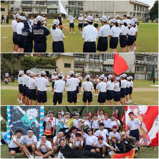 曇り空で雨が心配される中、第76回体育大会が開催されました。赤団団長の地田さん、白団団長の木村さんに率いられた両団が徒競走、団技、ダンス、リレーに好勝負を演じてくれました。競技優勝は、赤団。応援優勝は、白団がそれぞれ獲得しました。生徒の熱気で大会終了からその後の片付けまで雨に見舞われることはありませんでした。皆さん、よく頑張りました。