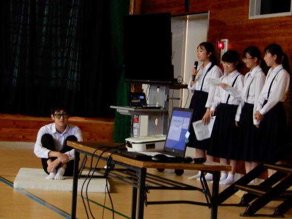総合的な学習の成果発表を各学年で行いました。1年生は芋の栽培、2年生は職場体験学習、3年生は福祉体験についてプレゼンテーションや実演などを交えて発表してくれました。短い準備期間でしたが、よくまとめられた良い発表でした。
