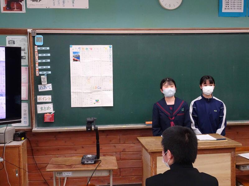 総合的な学習の時間に作成した企業説明資料を1年生が発表しました。どの資料もネットを使って細かいところまで調べ上げて作ってあったので、読み応えのあるものに仕上がっていました。来年は職場体験があります。きっと有意義な体験ができることでしょう。
