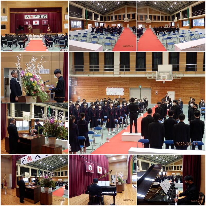 暖かい春の良き日に第76回卒業式を挙行しました。立派に成長した3年生が巣立っていきました。新しい広い世界でさらに自分を磨いていってください。君たちの未来は無限に広がっています。