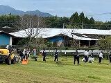 生徒・保護者が多数参加し、また保護者の方に草刈り機や重機等も用意していただき、