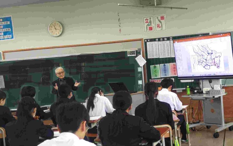 11月13日(木)1年生 きらり では、亀の甲区長の間賀田 晴行 さんをはじめ、国富町史談会から5名の方をお招きし、国富町(木脇地区)の歴史についてお話をしていただきました。