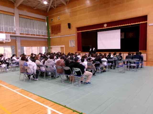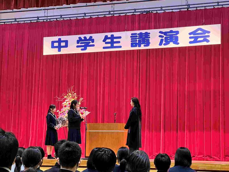 木脇中学校からは、3年生が参加し校内の合唱発表会でも披露した「僕のこと」を歌いました。この曲は混声四部合唱で難しい曲なのですが、3年生の美しいハーモニーが会場中に響きわたりました。