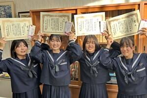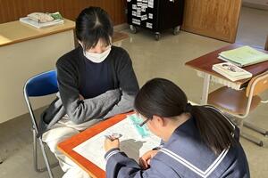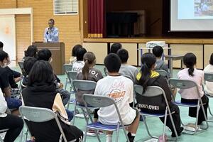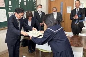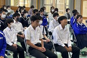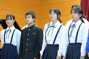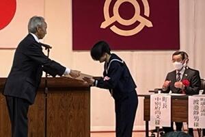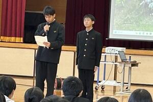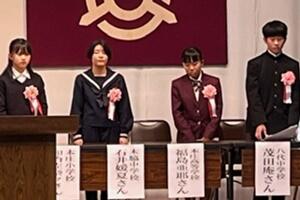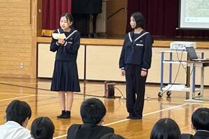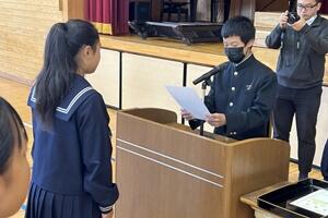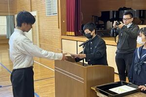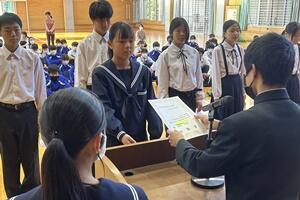 最後に、町の「読書感想文コンクール」において、1年の湯村恋菜さんが「最優秀賞」、2年の大塚万由里さんが「優秀賞」を受賞しました。
