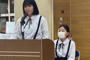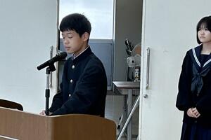 今年度は本校が輪番でしたので、2Bの内村魁杜君に作文の作成と朗読をお願いしました。
