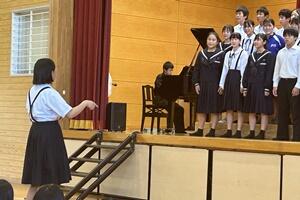 順位がつかないにもかかわらず、各クラスとも9/10の体育大会終了後から今日まで、音楽の時間だけでなく、昼休み、放課後も使って、合唱を作りれ上げていました。その間の校内は、あちこちに歌声が響き心地よさを感じました。