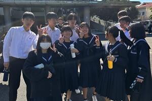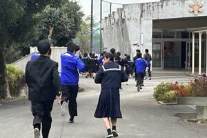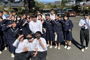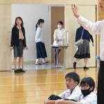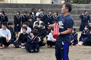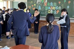 【離任式での生徒とのお別れ】