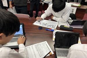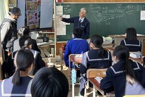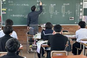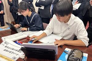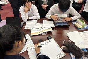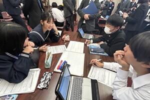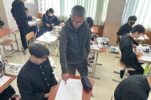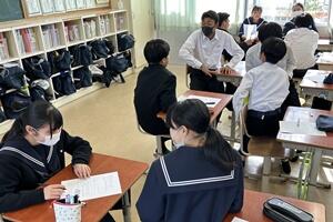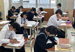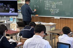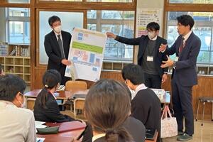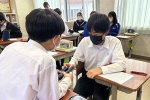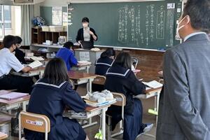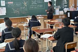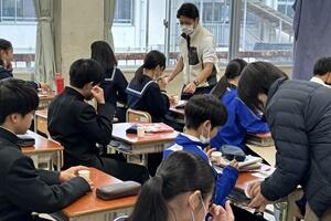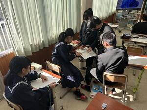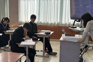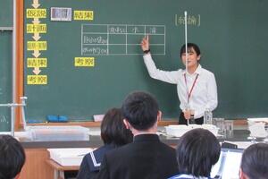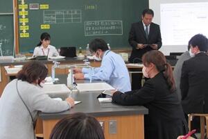 授業者の永倉先生はやや緊張気味でしたが、生徒の方は全く変わらず普段通りで、自分の思いついた考えをポンポンつぶやいていました。