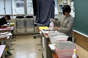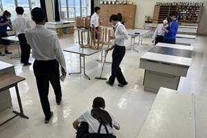 38/(金)、送別行事が終わった放課後、校内では卒業式に向けて、着々と準備が進んでいます。