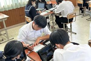 10/31(火)の4校時、県教委の方々が、ICTを活用した授業の効果を確かめるために、「B数学の授業参」観に来られました。