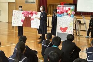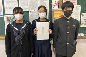 最後に、町の「読書感想文コンクール」において、1年の湯村恋菜さんが「最優秀賞」、2年の大塚万由里さんが「優秀賞」を受賞しました。