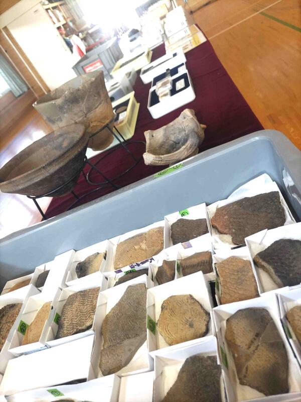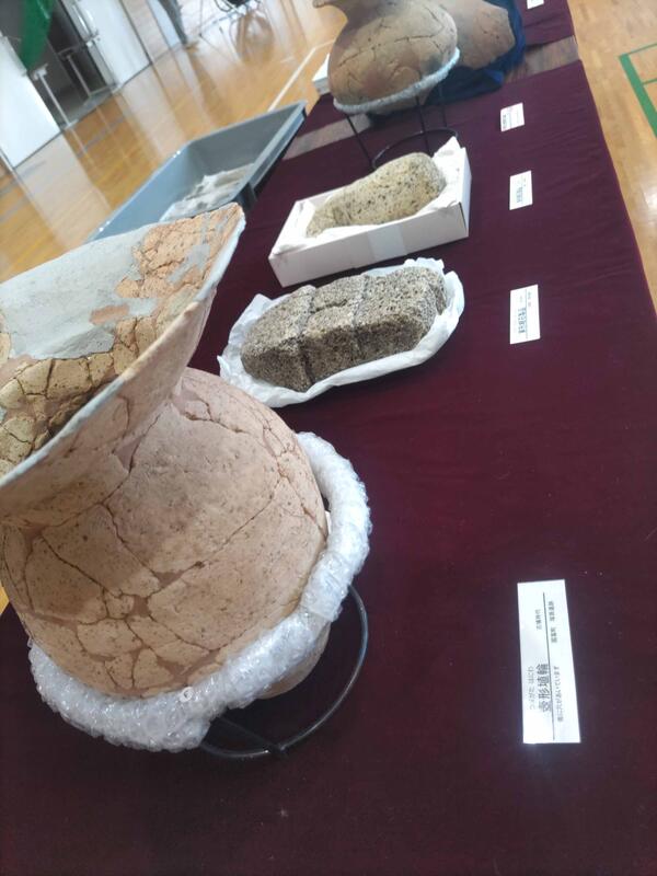 塚原遺跡や六野原古墳群などを紹介していただき、実際に出土した遺物も展示・解説していただきました。