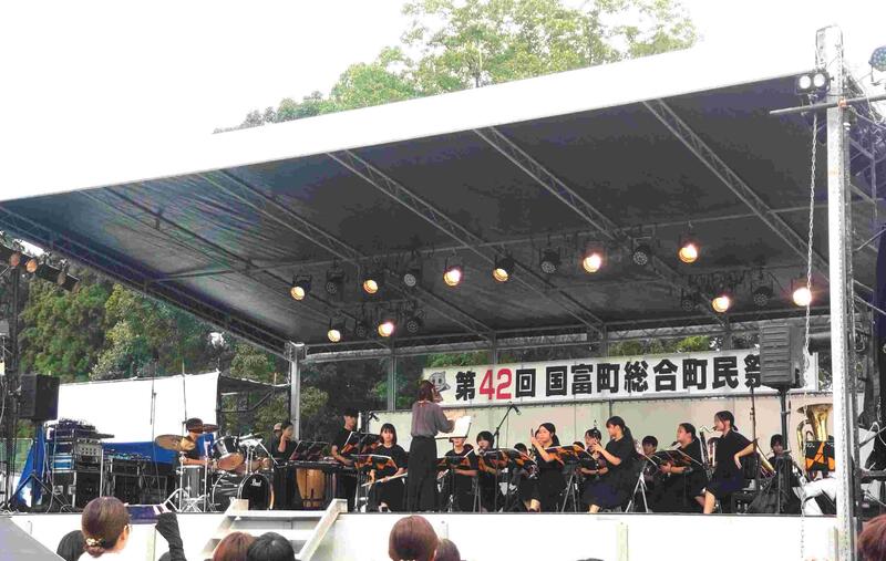 10月18日(土)国富町 町民祭のステージで吹奏楽部の皆さんが演奏しました。本庄中学校の音楽部とコラボして、会場を盛り上げてくれました。