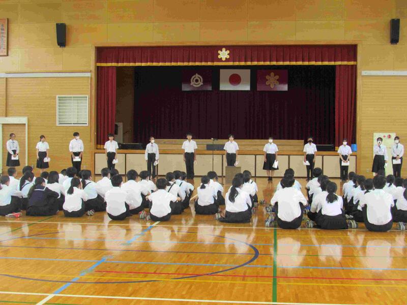 生徒会役員に立候補した皆さんは、勇気が必要だったと思いますし、木脇中学校のリーダーとして活躍したいという決意がとても伝わってきました。全員、すばらしい演説でした。
