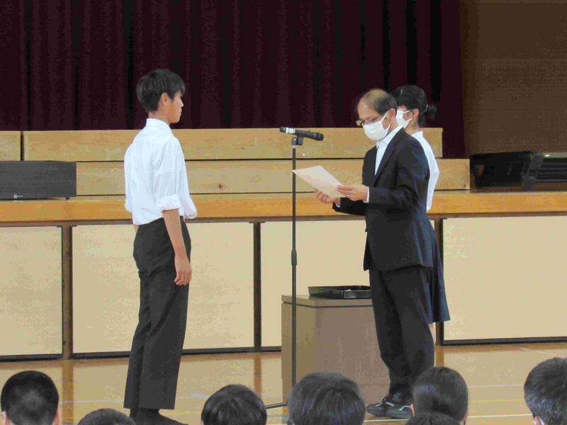 10月23日(木)旧生徒会役員の退任に伴い、感謝状を授与するとともに、新生徒会役員の任命を行いました。