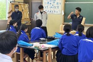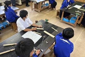 6/24(月)、1B技術の木工の授業に、宮田工務店3名の方々が講師として協力していただきました。