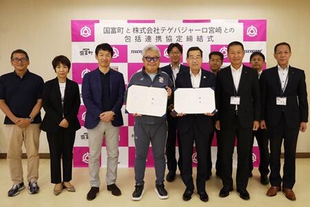 6/19(水)、「サッカーJ3テゲバジャー宮崎と国富町が連携協定」を結びました。
