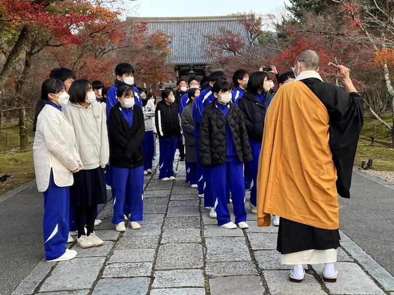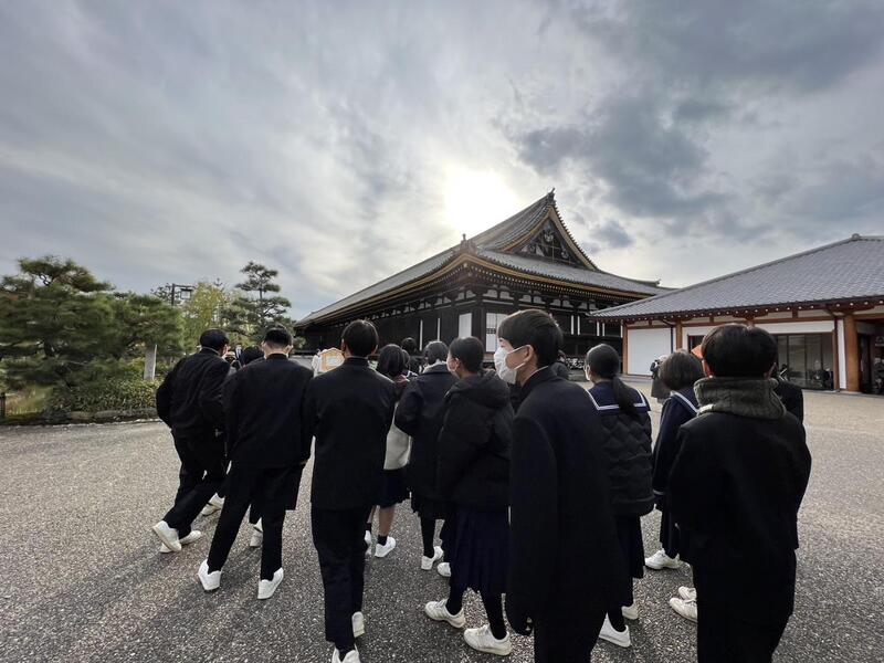 2日目は「京都市内班別自主研修」。自分たちで事前に調べて決めたコースをバスや電車を乗り継いで訪れます。金閣寺や二条城、平安神宮などの名所とともに、SDGsの取組をしているところも訪問しました。動物の糞を再利用している「京都市動物園」を訪れる班。エコバックとして世界から注目されている「風呂敷店」を見学する班など、様々なSDGsの取組を自分の目で確かめました。