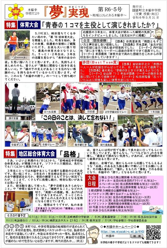 5/31(金)、「木脇中学校だより№5」を発行しました。