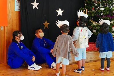 15日(月)の午前中、3年生が家庭科の授業の一環として、町内の保育所、幼稚園で保育実習を行いました。生徒たちは複数の施設に分かれ、事前に準備した手作り絵本の読み聞かせをしたり、園児が楽しめるクイズを出したりしていました。当日は天候にも恵まれ、外遊びでは園児たちと一緒に走り回り、元気いっぱいに体を動かす場面も見られました。生徒たちは、園児との関わり方を実際の体験を通して学んでいました。実習を受け入れていただいた保育所、幼稚園の皆様に感謝します。ありがとうございました。