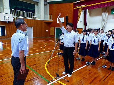 15日(火)の授業終了後に、中体連県大会及び宮崎地区駅伝大会の激励会を行いました。地区の激戦を勝ち抜き見事県大会への出場を果たした皆さん、そして学校代表として地区駅伝大会に出場する皆さんの健闘を祈ります。県大会が各会場で10月26日(土)から、駅伝大会が生目の杜運動公園で10月22日(火)に行われます。皆様のご声援をどうぞよろしくお願いいたします。