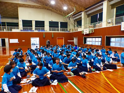 照葉樹林綾マラソンが、27日(日)に開催されます。25日(金)の授業終了後に最終の打ち合わせをしました。ランナーとして、応援者として、各種スタッフとして全校生徒が参加します。生徒たちもどんな貢献ができるのか、自分たちで考えました。天気が心配されますが、綾マラソンを全校生徒が一丸となって盛り上げます。