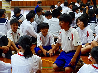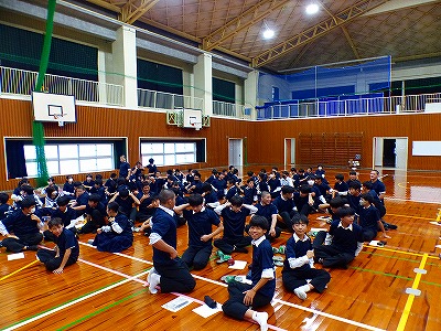 21日(木)の授業終了後に生徒集会を開きました。新しくなった生徒会役員が企画をして、交流会を行いました。まずは、学年や学級の枠をはなれてグループを作ります。その後は、自己紹介などを簡単にしました。あまり時間はとれませんでしたが、交流をきっかけにして挨拶などの輪が広がっていくことを目的とした新役員の皆さんの思いが伝わってくる生徒集会でした。役員の皆さん、ありがとうございました。また、いろんな企画を提案して実行に移してください。期待しています。